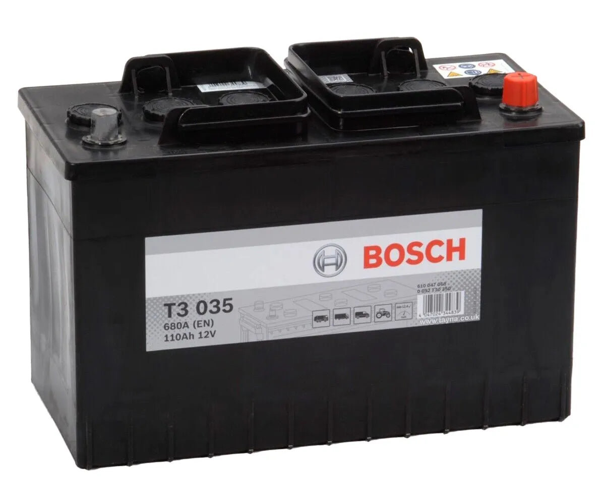 Bosch WET T3 Technology - Wet lead acid truck batteries are the ideal choice for entry level demanding trucks and lorries. They ensure for reliable long service life and reliable starting power. Designed for the rugged and demanding life that their application requires. With 15% more cranking power than equivalent batteries, the T3 range is ideal for heavy vehicle use.