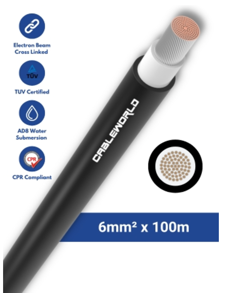 Elettro Brescia 6mm2 single-core DC cable 100m - Black