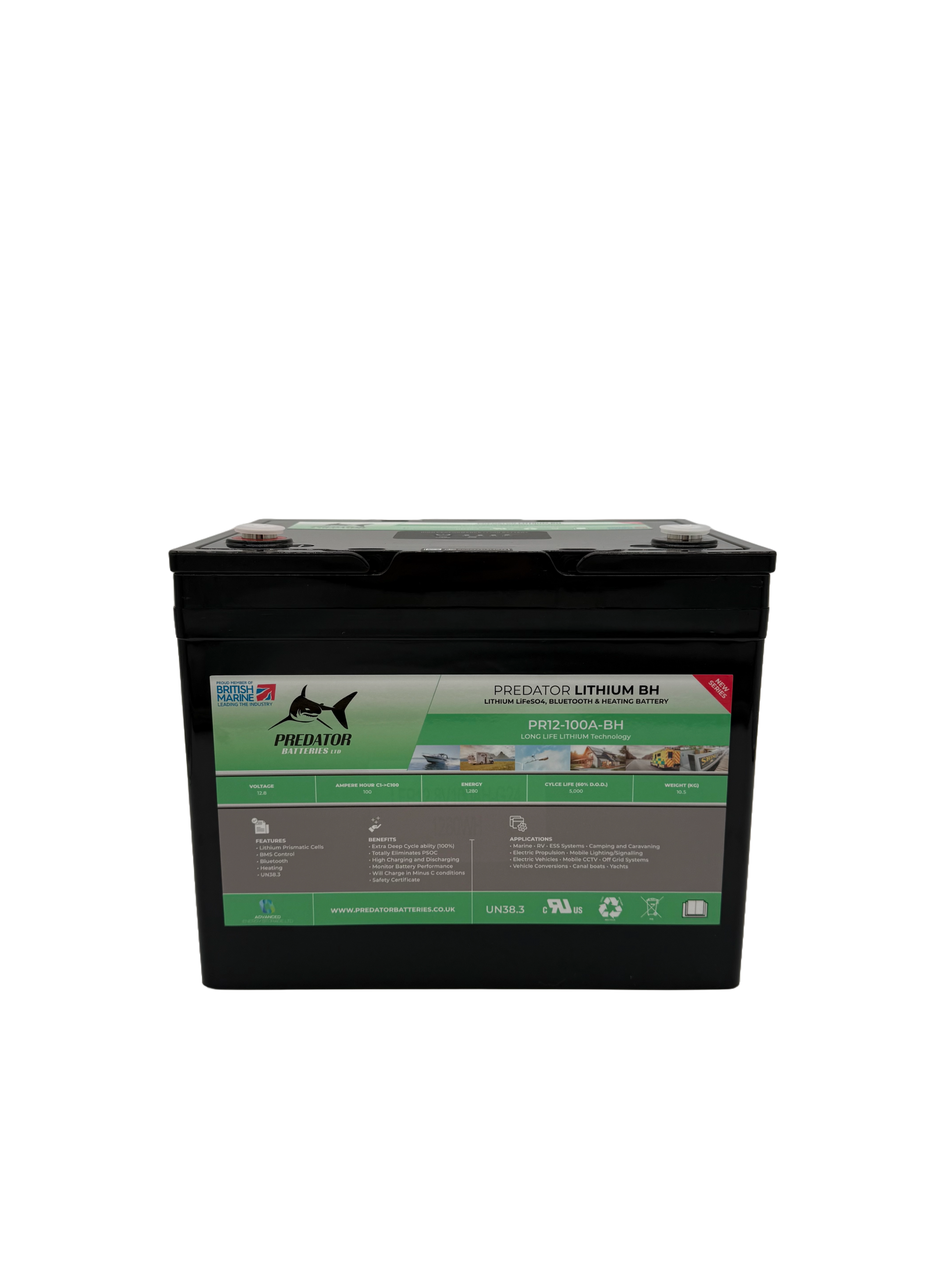 The Predator Lithium Battery with 100Ah is a great mid range level Lithium battery for use in many applications. With competitive prices, the Predator Lithium BH and XBH range are now becoming a real alternative to older style battery technology.