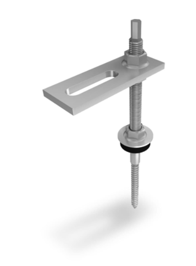 K2 SolidRail Hanger Bolt Set M10x180 with adapter plate and fiber cement seal. For fixing the K2 Systems components in the timber substructure, suitable for corrugated fibre cement roofing. Length wood thread 67 mm. Length metric thread 85 mm. General approval. Material: Stainless steel A2/ Aluminium/ EPDM