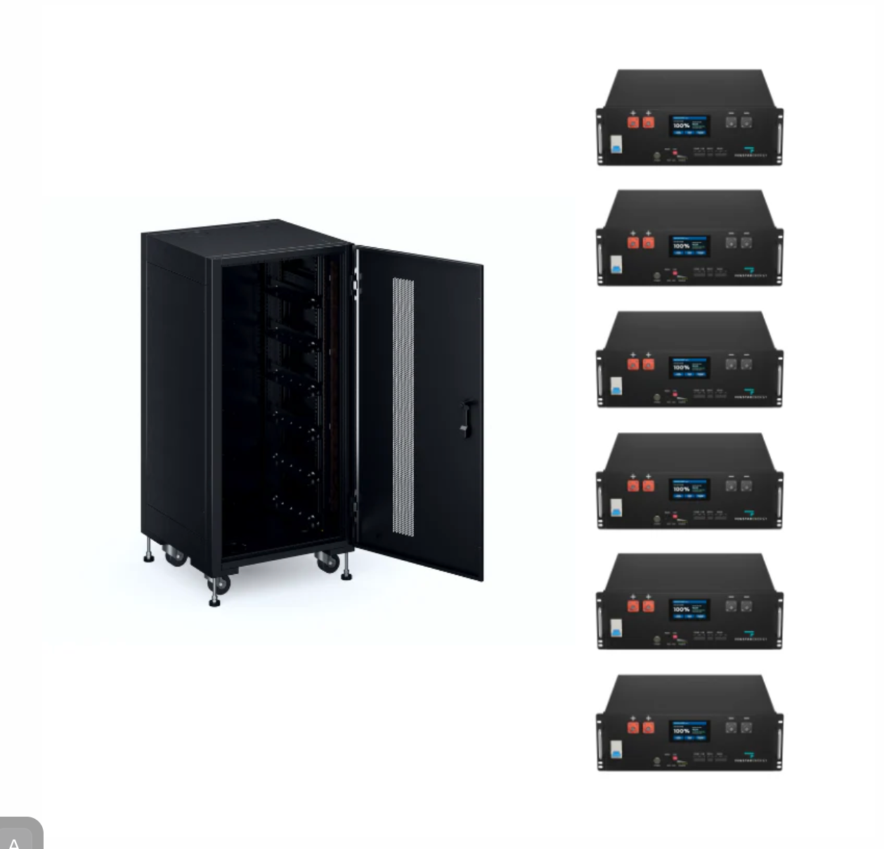 - Flexible Configurations: Choose from the included 6-rack cabinet (30kWh) with 6 batteries, or opt for the 6-rack cabinet and 3 battery configuration.