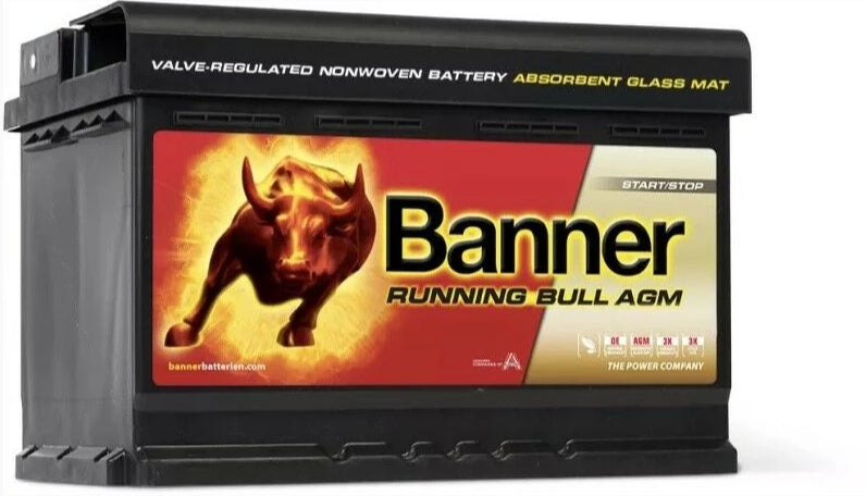 The Banner Running Bull AGM battery range covers the majority of new vehicles fitted with an engine start/stop function, in order to achieve the CO2 limitation targets set by the EU by means of sustained fuel consumption savings and emission reductions. In general, two differing starter battery types are employed in these environment-friendly vehicles, consisting of the absorbent glass mat (AGM) and the enhanced flooded battery (EFB) systems. The use of the appropriate technology depends largely on the fuel and CO2 savings that can be attained.
