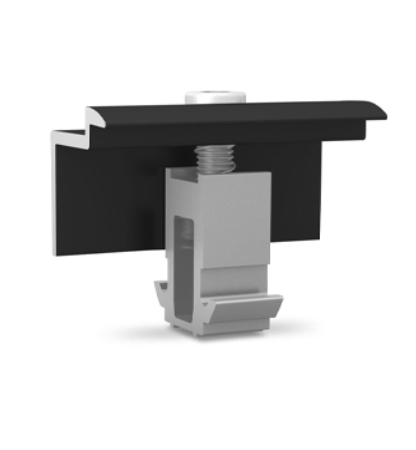 Black anodized universal end clamp set for fastening solar modules on K2 MiniRail, MicroRail, Dome 6 or Dome V Systems incl. screw and spring.