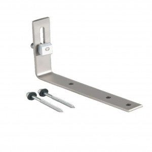 The sturdy 6mm stainless bracket is fixed to the rafters. The slate above is replaced above the fixings, so that the roof remains weathertight. Where the bracket is close to the edge of the covering slate, we suggest using a lead soaker over the bracket to ensure the roof remains watertight.