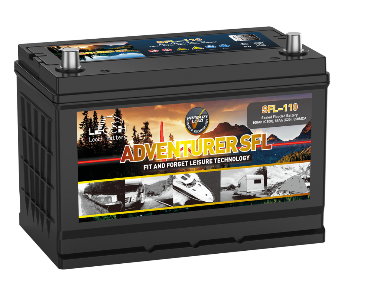 The Adventurer SFL series is a great quality flooded maintenance-free lead-acid collection from Leoch, one of the largest multi-range battery manufacturers in the world. Specifically designed for leisure applications, the batteries in this range offer good deep cycling ability