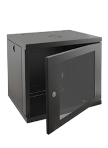 Dimensions assembled - W 550mm X D 550 mm X H 615mm. Each cabinet comprises a welded steel frame and adjustable front and rear mounting profiles. The cabinets feature ventilation slots in the top, have a lockable glass front door, and removable sides. The cabinet is finished in a high quality attractive black. Batteries need to be attached using front battery mounting holes only.