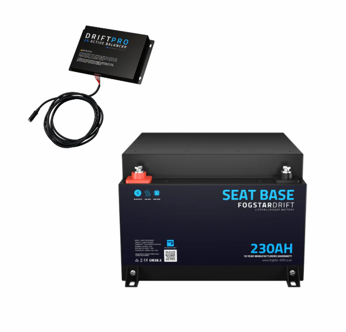 Our Fogstar Drift Seat Base includes a convenient on/off switch, allowing you to put the battery into hibernation mode without needing the app. You'll also find an input for the Fogstar Drift (JK) 2A Active Balancer, ideal for those who prefer to manually balance their battery cells. However, thanks to the high-quality, matched EVE cells in our Drift batteries, most users won’t need to use an Active Balancer frequently. If you notice any cell disparity, we recommend plugging in the device every three to six months for a few cycles to maintain optimal cell balancing.