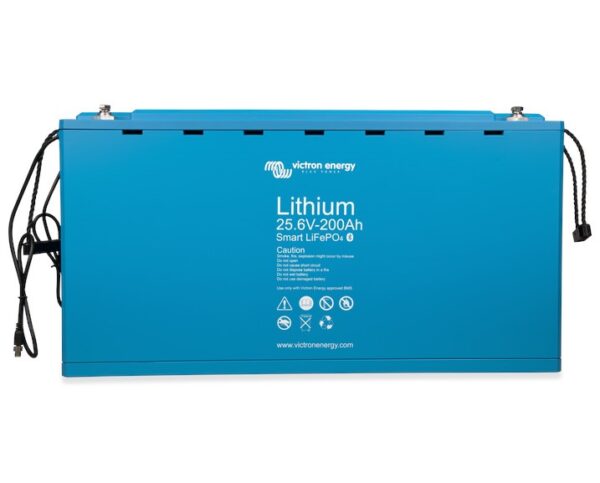 Our LFP batteries have integrated cell balancing and cell monitoring. Up to 5 batteries can be paralleled and up to four 12V batteries or two 24V batteries can be series connected, so that a 48V battery bank of up to 1500Ah can be assembled. The cell balancing/monitoring cables can be daisy-chained and must be connected to a Battery Management System (BMS).